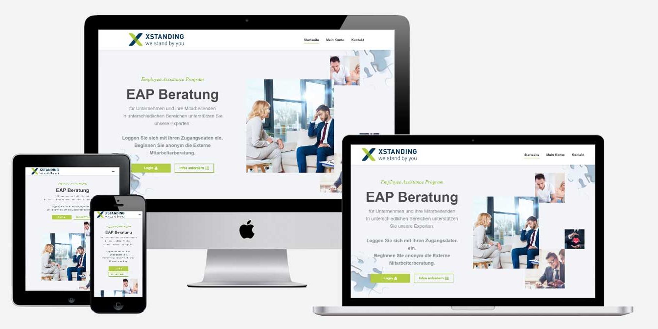Erstellen einer responsiven Webseite als Landing Page zur externen Mitarbeiterberatung mit Intergration eines Member Bereiches. Die Webseite dient einzig zum Login für Mitarbeitende deren Unternehmen das Employee Assistance Program ( EAP ) gebucht haben. Nur Mitarbeitende dieser Firmen haben Zugriff auf den Member Bereich und finden dort Kontaktmöglichkeiten via Telefon, E-Mail, WhatsApp oder Skype Chat zu einem Ansprechpartner der sie bei privaten und beruflichen Problemen unterstützt.